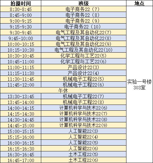 拍摄时间:11月21日(星期五),具体各毕业班级拍摄时间安排如下。