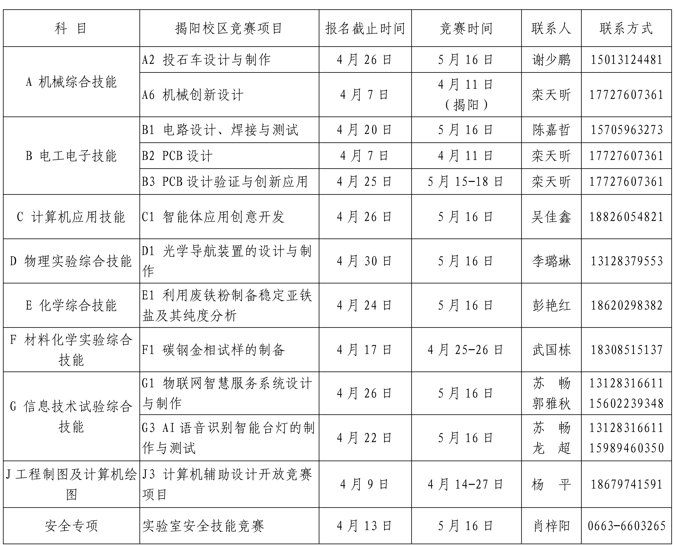 揭阳校区分赛场竞赛项目安排如下(各项目具体实施方案见附件):