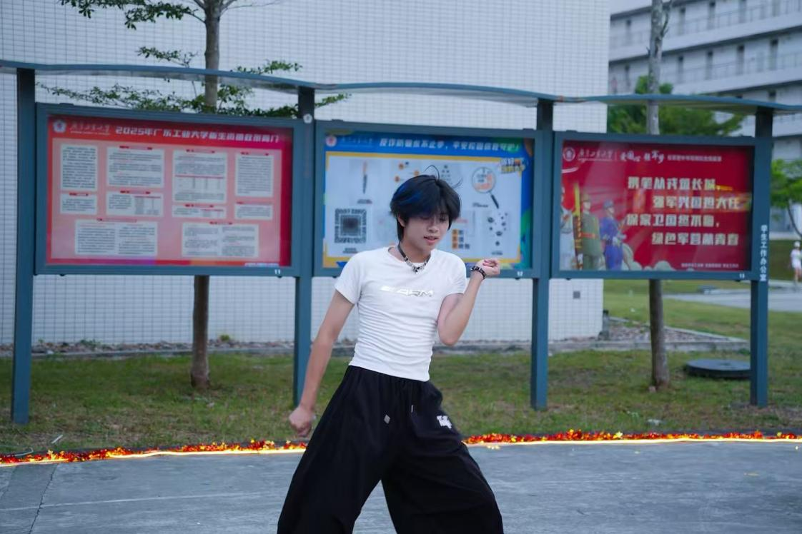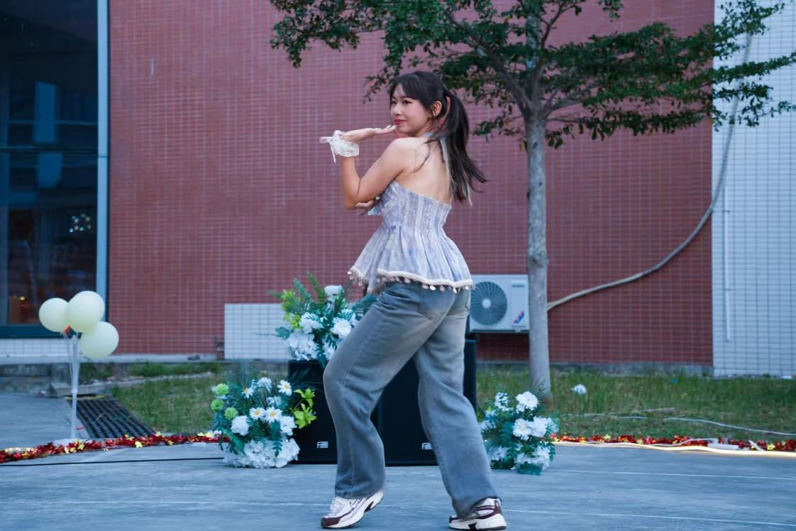 活动分为随机舞蹈和歌舞表演两个部分。活动开始前,艺术团成员化身“隐藏舞者”分散在人群里。当音乐响起,数十名艺术团成员从四面八方汇聚到舞台中央,以整齐划一的动作瞬间点燃了活动现场。随后,在热门曲目接连切换中,Breaking的地板动作、Locking的标志性停顿、Jazz的柔美律动依次上演,成员们用精湛的舞蹈技巧以及极具张力的舞台表现力将不同舞种的舞蹈魅力展现得淋漓尽致,吸引现场观众们纷纷拿出手机记录这精彩的舞动瞬间。很多“零基础”的同学尝试上台舞动着,在艺术团成员的指导下完成了简单的舞蹈动作,用舞动的方式拉近了彼此的距离。