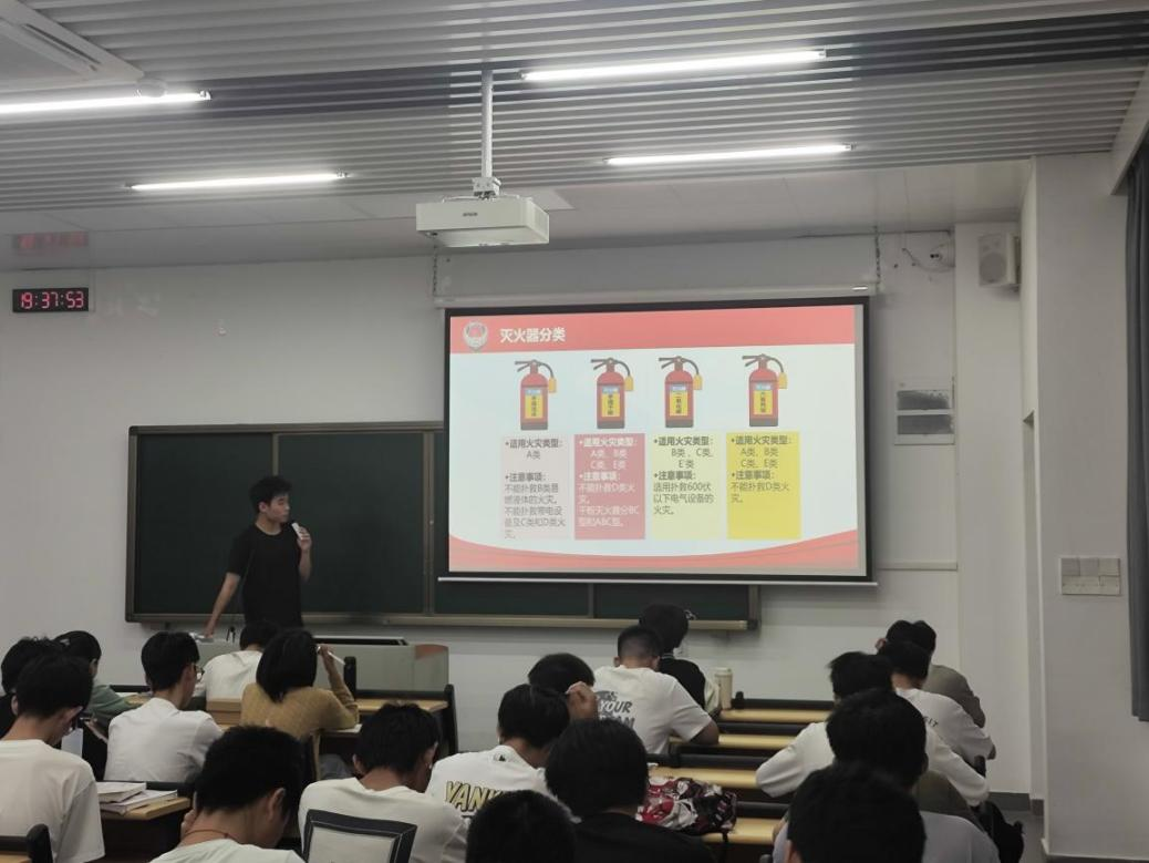 主题班会普知识。安全保卫办公室、学生工作办公室组织校园安全协会,开展消防安全主题班会,内容涵盖消防安全基本常识、消防设施使用方法、火灾预防、自救逃生技巧等多个方面。通过主题班会,进一步普及了消防安全知识,提高了学生的安全意识和自我保护能力。